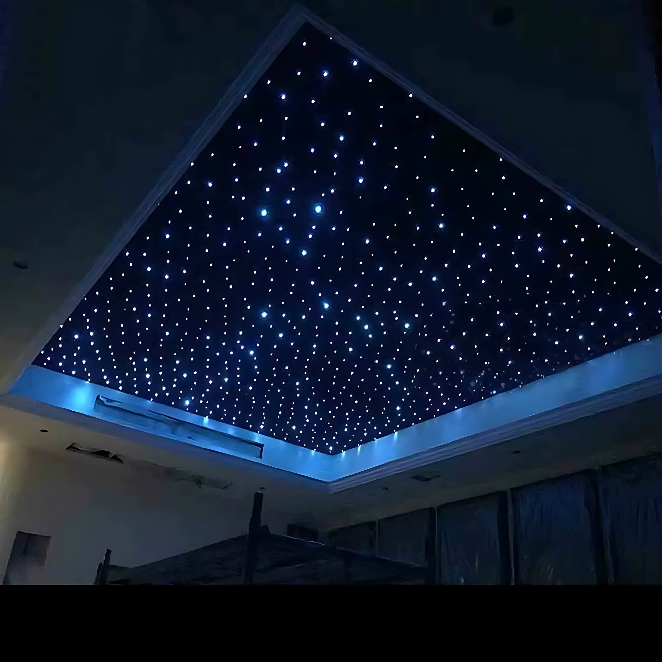 Мы создаём перфорированные фетровые панели, которые превращают потолок в настоящее звёздное небо. Сквозные узоры в виде сияющих созвездий, мягких туманностей и звёздных россыпей в сочетании с подсветкой или панорамным стеклом создают завораживающий эффект бесконечности. Это не просто декоративный элемент — это атмосфера уюта, магии и вдохновения, способная изменить восприятие пространства.